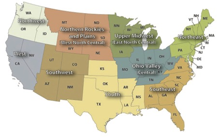 The National Centers for Environmental Information (NCEI) organizes the US into 9 climatic zones